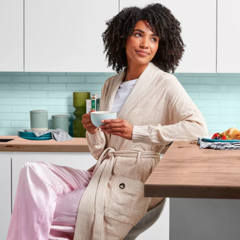 Every day feels like a spa day with this soft and luxurious Disney Princess robe. The shawl collar, tie belt, front pockets and ribbed trim conjure feelings of being at a five-star retreat. Royal elements like the subtle woven crown pattern and the pretty metal crown charm make it extra special, just like you.