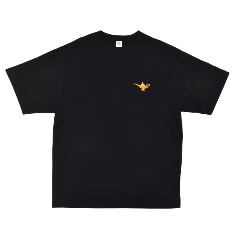 Celebrate 30 years of Aladdin with this short-sleeved commemorative T-shirt. Genies signature blue against the black fabric is magically eye-catching. The front of the shirt features the well-recognised magic lamp, re-created in embroidery while the back is a theatrical arrangement of Genie as his many different character forms. It’s the perfect way to be part of Aladdin’s 30th anniversary.