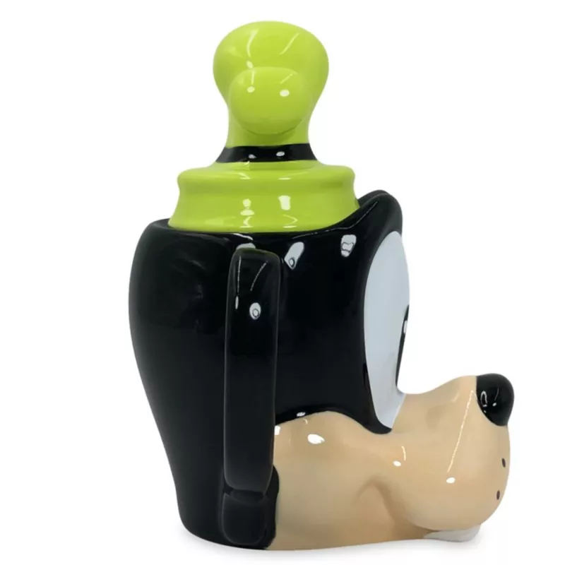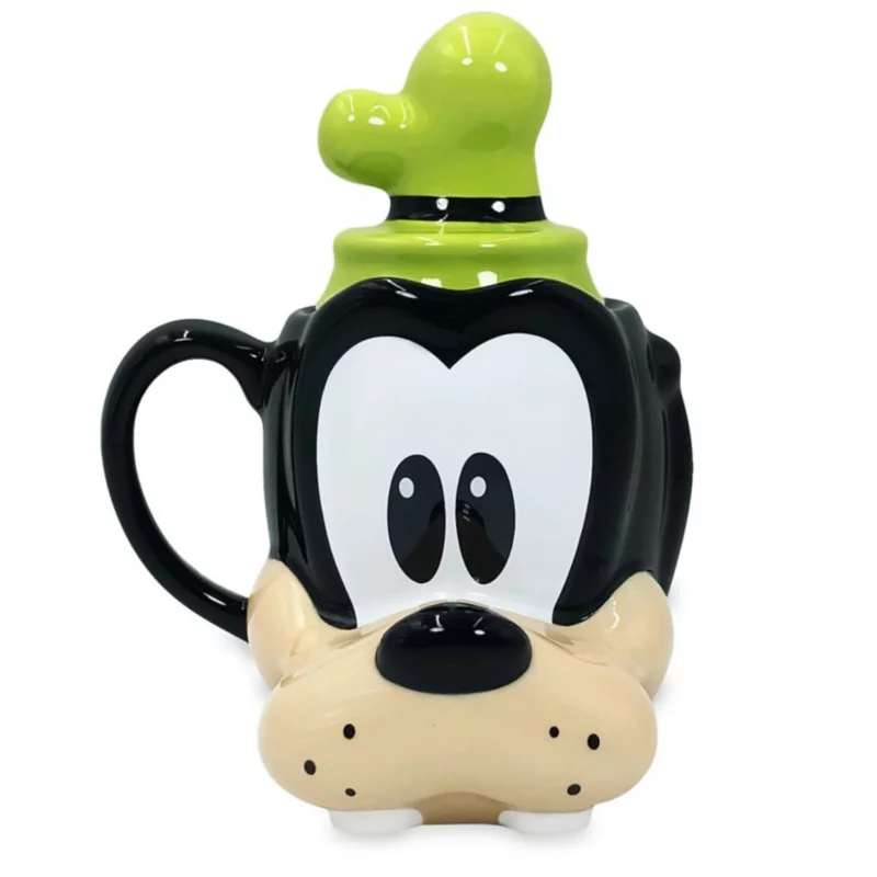 Hycuck! Celebrate Goofy’s 90th anniversary with this fun mug. The mug is designed after Goofy’s smiling face and features a removable lid that doubles as his signature green hat.